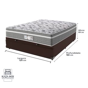O conforto que sua casa precisa e a qualidade que você merece está na Kazamix!O Colchão Evolution é a escolha ideal para quem busca conforto, suporte e qualidade em cada noite de sono. Com Molas Ensacadas que oferecem um suporte individualizado, e um Pillow Euro que proporciona uma camada extra de suavidade, esse colchão transforma seu descanso em uma experiência de luxo.Com espuma D28 de alta densidade, o Evolution garante firmeza e conforto duradouros. Seu acabamento em poliéster diamante e bordado em matelassê trazem um toque de elegância e sofisticação ao seu ambiente.Além disso, o colchão é tratado com propriedades antiácaro e antialérgico, garantindo um sono mais saudável e seguro.Invista no seu bem-estar com o colchão Evolution, e experimente a combinação perfeita de conforto e durabilidade!Modelo: EvolutionMarca: ProbelTamanho: ViúvoDimensões: 128x188X18 (Largura x Comprimento x Altura)Conforto: IntermediárioSistema: Molas EnsacadasPillow: Euro PillowPeso Máximo recomendado: 110 kg (Por pessoa)Proteções: Antiácaro, antialérgico, antifungo, antimofoGarantia: 1 ano pelo FabricanteO conforto que sua casa precisa e a qualidade que você merece está na KazamixAproveite cada metro quadrado do seu dormitório com a Cama Box Baú!Projetada com madeira de reflorestamento reforçada, a Cama Box Baú é a escolha ideal para quem busca otimização de espaço e praticidade na organização do dia a dia.Com um baú generoso, ela oferece a solução perfeita para armazenar travesseiros extras, cobertores, malas e muito mais. Além disso, sua estrutura robusta suporta até 150 kg por pessoa, garantindo a sustentação ideal para o seu colchão e prolongando sua vida útil.O pistão a gás robusto proporciona uma abertura suave e segura do baú, oferecendo praticidade e resistência no uso diário. Para completar, o acabamento de alta qualidade combina perfeitamente com qualquer estilo de decoração, agregando elegância e versatilidade ao seu ambiente.Não perca tempo! Adquira agora mesmo sua Cama Box Baú e diga adeus à falta de espaço e desorganização.Marca: KazaMixModelo: BaúCor do Box: MarromTamanho: ViúvoDimensões: 128X188X37 (Largura x Comprimento x Altura) Estrutura: MadeiraPeso máximo recomendado: 150 kg (Por Pessoa)Altura do Box: 32 cm Altura dos Pés: 5 cm Altura total: 37 cm Garantia: 03 mesesSelo Ecologicamente CorretoAtenção: Antes de finalizar sua compra, certifique-se de que as dimensões do produto sejam adequadas para serem transportadas pelos elevadores, portas, escadas e corredores de sua residência. Ressaltamos que não nos responsabilizamos pelo transporte do produto por meios específicos, como escadas, guinchos ou içamentos.