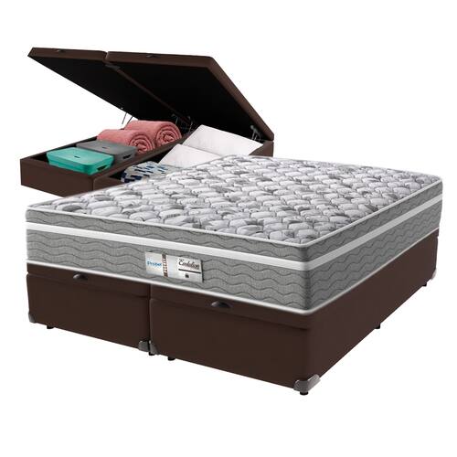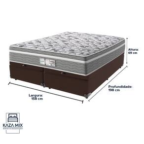 Bem-vindo(a) ao nosso catálogo!Apresentamos a você uma descrição completa sobre esse produto:Primeira marca a fabricar colchões em escala industrial no Brasil, a Probel sempre apresentou novidades ao mercado. Entre elas, estão os sistemas exclusivos de molejo Multilastic e de espumação Uniblock.Modelo: EvolutionNível de Conforto: Intermediário Suporte de peso: 240 quilos (120 kg por pessoa)Molas: Molas EnsacadasPillow: EuropillowEspuma: D28Altura: 32 cmTecido:Bordado em MatelassêTransforme suas noites com o Colchão Evolution, onde tecnologia e conforto se encontram para proporcionar o descanso perfeito. Com molas ensacadas e espuma de densidade D28, ele oferece o suporte ideal para alinhar sua coluna e aliviar pontos de pressão, garantindo um sono reparador e sem interrupções.O acabamento em poliéster diamante traz um toque de luxo, enquanto o pillow euro adiciona uma camada extra de conforto, fazendo você se sentir em um verdadeiro abraço a cada noite. Além disso, o tratamento antiácaro e antialérgico promove um ambiente mais saudável, ideal para quem busca bem-estar e saúde no seu descanso.Com suporte de peso de até 120 kg por pessoa, o Evolution é robusto e durável, feito para acompanhar você por muitos anos. Não perca a chance de transformar suas noites com o Colchão Evolution e sinta a diferença de um sono verdadeiramente revitalizante!Além de tudo, esse produto acompanha a Cama Box com Baú da Kaza Mix e assim se torna um conjunto perfeito para o seu quarto!Marca: Kaza MixCor do Baú: MarromTamanho: QueenMaterial dos pés: MadeiraEstrutura: MadeiraPeso máximo recomendado: Até 150kg de cada ladoAbertura: Pistão a gásLargura: 158cmComprimento: 198cmAltura total: 42cmAltura interna Baú: 27cmAltura dos pés: 6cmGarantia: 03 mesesSelo Ecologicamente CorretoAtenção: - Antes de finalizar sua compra, recomendamos que verifique se as dimensões do produto são adequadas para serem transportadas pelos elevadores, portas, escadas e corredores de sua residência. Ressaltamos que não nos responsabilizamos pelo transporte do produto por meios específicos, como escadas, guinchos ou içamentos.- É possível que hajam leves variações de cor de acordo com o dispositivo que está sendo utilizado como smartphones, computadores, monitores e outros.