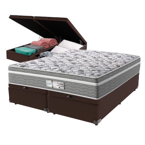 Cama Box Baú Marrom e Colchão Queen Evolution Molas Ensacadas Probel