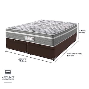 Bem-vindo(a) ao nosso catálogo!Apresentamos a você uma descrição completa sobre esse produto:Primeira marca a fabricar colchões em escala industrial no Brasil, a Probel sempre apresentou novidades ao mercado. Entre elas, estão os sistemas exclusivos de molejo Multilastic e de espumação Uniblock.Modelo: EvolutionNível de Conforto: Intermediário Suporte de peso: 240 quilos (120 kg por pessoa)Molas: Molas EnsacadasPillow: EuropillowEspuma: D28Altura: 32 cmTecido:Bordado em MatelassêTransforme suas noites com o Colchão Evolution, onde tecnologia e conforto se encontram para proporcionar o descanso perfeito. Com molas ensacadas e espuma de densidade D28, ele oferece o suporte ideal para alinhar sua coluna e aliviar pontos de pressão, garantindo um sono reparador e sem interrupções.O acabamento em poliéster diamante traz um toque de luxo, enquanto o pillow euro adiciona uma camada extra de conforto, fazendo você se sentir em um verdadeiro abraço a cada noite. Além disso, o tratamento antiácaro e antialérgico promove um ambiente mais saudável, ideal para quem busca bem-estar e saúde no seu descanso.Com suporte de peso de até 120 kg por pessoa, o Evolution é robusto e durável, feito para acompanhar você por muitos anos. Não perca a chance de transformar suas noites com o Colchão Evolution e sinta a diferença de um sono verdadeiramente revitalizante!Além de tudo, esse produto acompanha a Cama Box com Baú da Kaza Mix e assim se torna um conjunto perfeito para o seu quarto!Marca: Kaza MixCor do Baú: MarromTamanho: QueenMaterial dos pés: MadeiraEstrutura: MadeiraPeso máximo recomendado: Até 150kg de cada ladoAbertura: Pistão a gásLargura: 158cmComprimento: 198cmAltura total: 42cmAltura interna Baú: 27cmAltura dos pés: 6cmGarantia: 03 mesesSelo Ecologicamente CorretoAtenção: - Antes de finalizar sua compra, recomendamos que verifique se as dimensões do produto são adequadas para serem transportadas pelos elevadores, portas, escadas e corredores de sua residência. Ressaltamos que não nos responsabilizamos pelo transporte do produto por meios específicos, como escadas, guinchos ou içamentos.- É possível que hajam leves variações de cor de acordo com o dispositivo que está sendo utilizado como smartphones, computadores, monitores e outros.