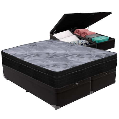 Cama Box Baú Preto e Colchão Airtech Pampa Molas ensacadas Queen Ortobom