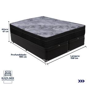 O conforto que sua casa precisa e a qualidade que você merece está na Kazamix!Redefina suas noites de sono com o Colchão Pampa Molas Ensacadas, projetado para oferecer máximo conforto e suporte. Suas molas ensacadas individualmente garantem estabilidade, minimizando vibrações e proporcionando um descanso tranquilo. O Ortopillow com tecido em poliéster de alta resistência e bordado matelassê acrescenta uma camada extra de maciez e conforto. Com tratamento antiácaro, antifungo e tecnologia No Turn, é ideal para quem busca praticidade e um ambiente de sono mais saudável. Este colchão combina qualidade e durabilidade para oferecer uma experiência de descanso incomparável.Modelo: Pampa Marca: OrtobomTamanho: QueenDimensões: 158x198X24 (Largura x Comprimento x Altura)Conforto: MacioSistema: Molas ensacadas Pillow: Euro PillowPeso Máximo recomendado: 120 kg (Por pessoa)Proteções: Antiácaro, antialérgico, antifungo, antimofoGarantia: 1 ano pelo FabricanteO conforto que sua casa precisa e a qualidade que você merece está na KazamixAproveite cada metro quadrado do seu dormitório com a Cama Box Baú!Projetada com madeira de reflorestamento reforçada, a Cama Box Baú é a escolha ideal para quem busca otimização de espaço e praticidade na organização do dia a dia.Com um baú generoso, ela oferece a solução perfeita para armazenar travesseiros extras, cobertores, malas e muito mais. Além disso, sua estrutura robusta suporta até 150 kg por pessoa, garantindo a sustentação ideal para o seu colchão e prolongando sua vida útil.O pistão a gás robusto proporciona uma abertura suave e segura do baú, oferecendo praticidade e resistência no uso diário. Para completar, o acabamento de alta qualidade combina perfeitamente com qualquer estilo de decoração, agregando elegância e versatilidade ao seu ambiente.Não perca tempo! Adquira agora mesmo sua Cama Box Baú e diga adeus à falta de espaço e desorganização.Marca: KazaMixModelo: BaúCor do Box: PretoTamanho: QueenDimensões: 158X198X37 (Largura x Comprimento x Altura) Estrutura: MadeiraPeso máximo recomendado: 150 kg (Por Pessoa)Altura do Box: 32 cm Altura dos Pés: 5 cm Altura total: 37 cm Garantia: 03 mesesSelo Ecologicamente CorretoAtenção: Antes de finalizar sua compra, certifique-se de que as dimensões do produto sejam adequadas para serem transportadas pelos elevadores, portas, escadas e corredores de sua residência. Ressaltamos que não nos responsabilizamos pelo transporte do produto por meios específicos, como escadas, guinchos ou içamentos.