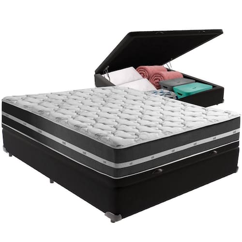 Cama Box Baú Preto E Colchão Classic Preto Molas Ensacadas Casal Anjos