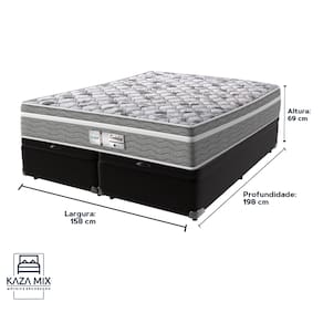 O conforto que sua casa precisa e a qualidade que você merece está na Kazamix!O Colchão Evolution é a escolha ideal para quem busca conforto, suporte e qualidade em cada noite de sono. Com Molas Ensacadas que oferecem um suporte individualizado, e um Pillow Euro que proporciona uma camada extra de suavidade, esse colchão transforma seu descanso em uma experiência de luxo.Com espuma D28 de alta densidade, o Evolution garante firmeza e conforto duradouros. Seu acabamento em poliéster diamante e bordado em matelassê trazem um toque de elegância e sofisticação ao seu ambiente.Além disso, o colchão é tratado com propriedades antiácaro e antialérgico, garantindo um sono mais saudável e seguro.Invista no seu bem-estar com o colchão Evolution, e experimente a combinação perfeita de conforto e durabilidade!Modelo: EvolutionMarca: ProbelTamanho: QueenDimensões: 158x198X32 (Largura x Comprimento x Altura)Conforto: IntermediárioSistema: Molas EnsacadasPillow: Euro PillowPeso Máximo recomendado: 110 kg (Por pessoa)Proteções: Antiácaro, antialérgico, antifungo, antimofoGarantia: 1 ano pelo FabricanteO conforto que sua casa precisa e a qualidade que você merece está na KazamixAproveite cada metro quadrado do seu dormitório com a Cama Box Baú!Projetada com madeira de reflorestamento reforçada, a Cama Box Baú é a escolha ideal para quem busca otimização de espaço e praticidade na organização do dia a dia.Com um baú generoso, ela oferece a solução perfeita para armazenar travesseiros extras, cobertores, malas e muito mais. Além disso, sua estrutura robusta suporta até 150 kg por pessoa, garantindo a sustentação ideal para o seu colchão e prolongando sua vida útil.O pistão a gás robusto proporciona uma abertura suave e segura do baú, oferecendo praticidade e resistência no uso diário. Para completar, o acabamento de alta qualidade combina perfeitamente com qualquer estilo de decoração, agregando elegância e versatilidade ao seu ambiente.Não perca tempo! Adquira agora mesmo sua Cama Box Baú e diga adeus à falta de espaço e desorganização.Marca: KazaMixModelo: BaúCor do Box: PretoTamanho: QueenDimensões: 158X198X37 (Largura x Comprimento x Altura) Estrutura: MadeiraPeso máximo recomendado: 150 kg (Por Pessoa)Altura do Box: 32 cm Altura dos Pés: 5 cm Altura total: 37 cm Garantia: 03 mesesSelo Ecologicamente CorretoAtenção: Antes de finalizar sua compra, certifique-se de que as dimensões do produto sejam adequadas para serem transportadas pelos elevadores, portas, escadas e corredores de sua residência. Ressaltamos que não nos responsabilizamos pelo transporte do produto por meios específicos, como escadas, guinchos ou içamentos.