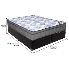 O conforto que sua casa precisa e a qualidade que você merece está na Kazamix!O Colchão ISO Molas combina molas ensacadas individualmente e espuma D26, proporcionando suporte personalizado e conforto duradouro. Com Pillow Euro e lateral em tecido suede, oferece maior maciez e sofisticação, além de proteger as laterais. O sistema No Turn facilita a manutenção, tornando-o prático e durável. Produzido pela Ortobom, reconhecida pela qualidade, é a escolha ideal para um sono reparador e confortável.Modelo: ISO MolasMarca: OrtobomTamanho: QueenDimensões: 158x198X25 (Largura x Comprimento x Altura)Conforto: IntermediárioSistema: Molas EnsacadasPillow: ORTO PILLOWPeso Máximo recomendado: 100 kg (Por pessoa)Proteções: Antiácaro, antialérgico, antifungo, antimofoGarantia: 1 ano pelo FabricanteO conforto que sua casa precisa e a qualidade que você merece está na KazamixAproveite cada metro quadrado do seu dormitório com a Cama Box Baú!Projetada com madeira de reflorestamento reforçada, a Cama Box Baú é a escolha ideal para quem busca otimização de espaço e praticidade na organização do dia a dia.Com um baú generoso, ela oferece a solução perfeita para armazenar travesseiros extras, cobertores, malas e muito mais. Além disso, sua estrutura robusta suporta até 150 kg por pessoa, garantindo a sustentação ideal para o seu colchão e prolongando sua vida útil.O pistão a gás robusto proporciona uma abertura suave e segura do baú, oferecendo praticidade e resistência no uso diário. Para completar, o acabamento de alta qualidade combina perfeitamente com qualquer estilo de decoração, agregando elegância e versatilidade ao seu ambiente.Não perca tempo! Adquira agora mesmo sua Cama Box Baú e diga adeus à falta de espaço e desorganização.Marca: KazaMixModelo: BaúCor do Box: PretoTamanho: QueenDimensões: 158X198X37 (Largura x Comprimento x Altura) Estrutura: MadeiraPeso máximo recomendado: 150 kg (Por Pessoa)Altura do Box: 32 cm Altura dos Pés: 5 cm Altura total: 37 cm Garantia: 03 mesesSelo Ecologicamente CorretoAtenção: Antes de finalizar sua compra, certifique-se de que as dimensões do produto sejam adequadas para serem transportadas pelos elevadores, portas, escadas e corredores de sua residência. Ressaltamos que não nos responsabilizamos pelo transporte do produto por meios específicos, como escadas, guinchos ou içamentos.