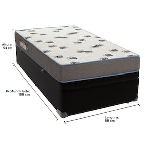 Cama Box Baú Preto e Colchão Light Espuma D33 Solteiro Ortobom