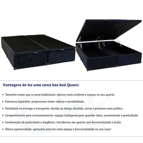 A Cama Baú Queen, que oferece um tamanho maior que a cama tradicional, garantindo mais conforto e espaço. Sua estrutura bipartida proporciona maior reforço e durabilidade, além de facilitar a entrega e o transporte. Com um compartimento inteligente para guardar itens, ela une praticidade e elegância para transformar seu quarto. Aproveite essa oportunidade de ter mais espaço e funcionalidade!