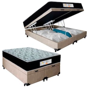 Cama Box Baú Queen Bipartido Suede + Colchão Molas Ensacadas SerenePrime Sonnolux 158x198x69 - Bege