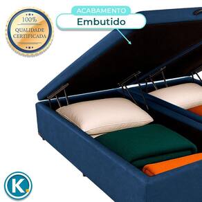 Cama Box Bau Queen Blindado Nature Azul 158x198 Base baú Casal com 42cm de altura e amplo espaço interno para organização Revestimento em Veludo , fácil de limpar e com visual moderno