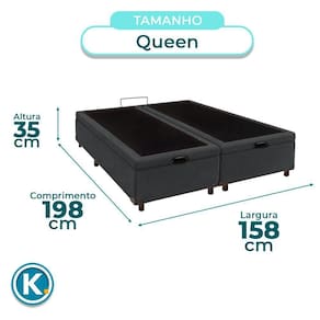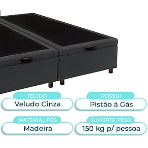 Modelo: Elite Marca: Nature Tamanho: Queen Tecido: Veludo Largura: 158cm Comprimento: 198cm Altura: 35cm Altura dos Pés: 7cm Material dos Pés: Madeira Suporte de Peso: 150Kg Peso: 40Kg Garantia: 3 Meses