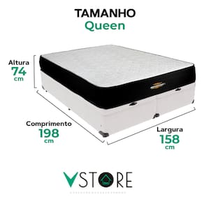 A tecnologia que a sua casa merece está na V-Store! O Conjunto Colchão Orthopedic + Base Box Baú Bravus da V-Store une conforto e funcionalidade. O colchão, com espuma D33 e suporte extra firme, oferece alinhamento ideal e proteção contra ácaros, alergias e fungos. A base box baú, com estrutura resistente e espaço interno, combina organização e estilo, otimizando seu dormitório com praticidade e elegância.Característica Do Colchão: Modelo: OrthopedicMarca: V-StoreTamanho: QueenDimensões: 158x30x198 (Largura x Altura x Comprimento)Conforto: Extra FirmeSistema: EspumaPillow: Não se aplicaPeso Máximo recomendado: 110 kg (Por pessoa)Proteções: Antiácaro, antialérgico, antifungo, antimofoGarantia: 12 Meses (Espuma)Característica Da Base: Marca: V-StoreModelo: BravusCor do Box: BrancoTamanho: QueenDimensões: 158x44x198 (Largura x Altura x Comprimento)Estrutura: MadeiraPeso máximo recomendado: 150 kg (Por Pessoa)Altura do Box: 38 cmAltura dos Pés: 6 cmAltura total: 44 cmGarantia: 12 Meses (Estrutura) / 3 meses (Tecido)Selo Ecologicamente CorretoAtenção:- Antes de finalizar sua compra, recomendamos que verifique se as dimensões do produto são adequadas para serem transportadas pelos elevadores, portas, escadas e corredores de sua residência. Ressaltamos que não nos responsabilizamos pelo transporte do produto por meios específicos, como escadas, guinchos ou içamentos.- É possível que hajam leves variações de cor de acordo com o dispositivo que está sendo utilizado como smartphones, computadores, monitores e outros.