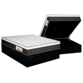 Cama Box Baú Queen: Colchão Anatômico Plumatex Falcon Ultra Firme + Base Crc Suede Black (158x198)