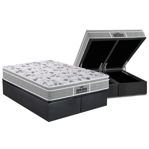 Abaixo segue os produtos do KIT: Cama Box Baú Queen: Colchão Anatômico Probel D45 / Guarda Costas PróExtreme Plus + Base CRC Suede Gray(158x198)