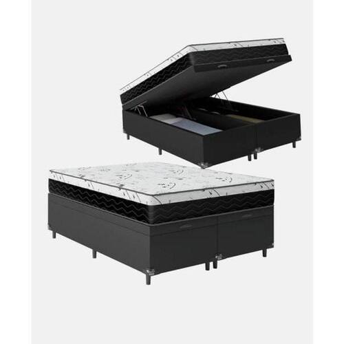 Cama Box Baú Queen Colchão Mola Bonnel Belos Sonhos + Box Sintético 69x158x198 - Bege