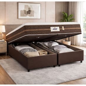 Cama Box Baú Queen Colchão Molas Flora Gazin 158x198x61cm - Marrom