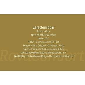 Dimensões(Cm): Comprimento(Profundidade): 198cm x Largura: 158cm x Altura: 40cm Vantagens Extras de Colchão - c/ Sistema Polyframe Tipo de Pillow - Pillow Top Europeu Tecido com Tratamento do Colchão - AntiÁcaro e AntiFungo Bordado do Revestimento do Colchão - Pantográfico Forração Revestimento do Colchão - Malha Importada - Malha 3D Forração do Revestimento Inferior do Colchão - Antiderrapante Tecido de Revestimento da Faixa Lateral do Colchão - Malha - Linho Modo de Utilização do Colchão - One Side Camadas Interna do Estofamento de Espuma do Colchão - Gel - Soft - D20 - D28 - D30 - D33 Tipo de Mola do Colchão - LFK Nível de Firmeza do Colchão - Extra Macio Peso Máximo Suportado do Colchão - 120 kg Certificação de Qualidade do Colchão - Qualidade Aprovada - Selo Abicol Nossa Avaliação do Colchão - Qualidade Excelente Tempo de Garantia do Colchão - 12 meses