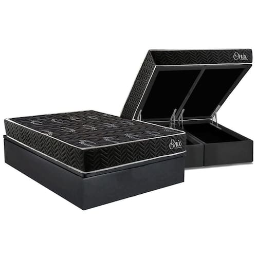 Cama Box Baú Queen + Colchão Anatômico Kappesberg D28 Anatômico Onix + Base CRC Corano Gray