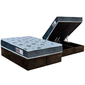 Cama Box Baú Queen: Colchão Anatômico Orthoflex D45 / Cecina + Base CRC Suede Brown(158x198)