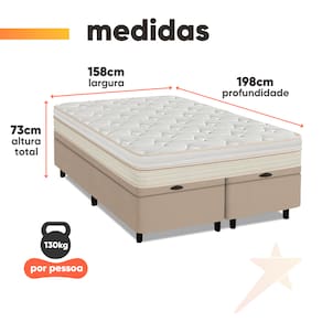 ITENS INCLUSOS: 1 Colchão Queen (158cm), 2 Box Baú (79cm)