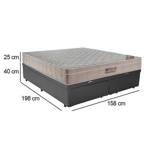Cama Box Baú Queen Sintético Bipartido + Colchão Ortobom Airtech Molas Ensacadas 158x198x65 Cinza