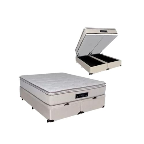 Cama Box Baú Queen Sintético + Colchão Cloud Pillow Top Molas Ensacadas Luckspuma 158x198x74 Cor:bege