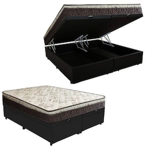 Cama Baú Queen Bipartido + Colchão Elegance Ortopédico Espuma D33 Extra Firme 63x158x198 Branco/ Marrom