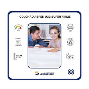 Conforto Super Firme: o colchão Aspen Luckspuma possui espuma D33 de alta densidade, oferecendo sustentação ideal e alinhamento correto da coluna.
