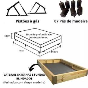 LOJA ALBATROZ CAMAS E COLCHÕES LTDA - LATERAIS EXTERNAS, FUNDO DO BAÚ E TAMPA: BLINDADOS - além dos sarrafos de madeira reforçamos a estrutura das laterais, fundo e tampa com compensados, não deixando apenas no tecido - SUPORTA 150KG CADA LADO - 300KG TOTAL **CAMA BOX BAÚ SOLTEIRÃO REFORÇADA - EXCLUSIVE (sem colchão) Largura: 1,10 Comprimento: 1,88 Profundidade: 30cm (parte interna do Baú) = ALTURA (sem pezinhos) = 42cm // ALTURA TOTAL (com pezinhos) = 48cm aprox. Acompanha: 02 PISTÕES A GÁS - amortecedores pneumáticos que possibilitam a fácil abertura do baú, o mantendo aberto enquanto utilizado. 02 puxadores utilizados para facilitar a abertura e o fechamento do box baú. Cantoneiras 07 pezinhos de madeira com 6cm de altura cada aprox. CORES E REVESTIMENTOS (Tons das cores poderão ser alterados dependendo do lote): Corino liso Revestimento interno e tampo externo: TNT preto Política de entrega: Efetue a compra apenas com certeza! Por favor, confira as dimensões do produto e certifique-se de que estão adequadas aos elevadores, portas e corredores do local de entrega, pois não fazemos a montagem, desmontagem do produto e/ou portas e janelas, transporte pela escada ou içamento pelo lado de fora do prédio. Transportadora terceirizada não sobe escadas. GARANTIA LEGAL: 03 MESES Palavras-chave para busca: cama box base box base baú base box baú cama solteiro cama casal box cama box casal cama solteiro cama casal madeira cama de casal cama solteiro box cama king cama box colchão casal cama box casal colchão de solteiro cama box queen cama box solteiro cama box bau solteiro cama box bau cama box solteiro cama Box casal cama box king bau casal quarto quarto casal bau solteiro bau king size base box solteiro base box queen base box king base box viuva