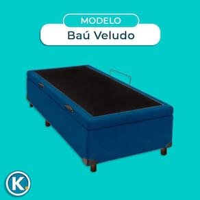 Cama Box Bau Solteirão Blindado Nature Azul 96x203 Base baú solteiro com 42cm de altura e amplo espaço interno para organização Revestimento em Veludo , fácil de limpar e com visual moderno