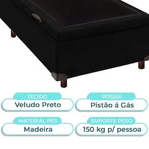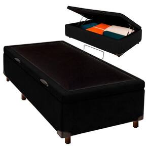 Cama Box Bau Solteirão Blindado Nature Preto 96x203 Base baú solteiro com 42cm de altura e amplo espaço interno para organização Revestimento em Veludo , fácil de limpar e com visual moderno
