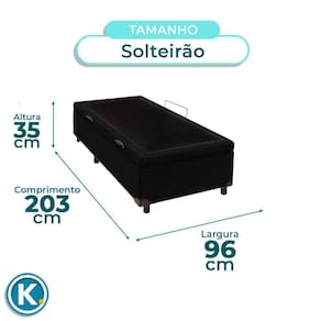 Modelo: Elite Marca: Nature Tamanho: Solteirão Tecido: Veludo Largura: 96cm Comprimento: 203cm Altura: 35cm Altura dos Pés: 7cm Material dos Pés: Madeira Suporte de Peso: 150Kg Peso: 25Kg Garantia: 3 Meses
