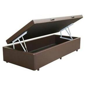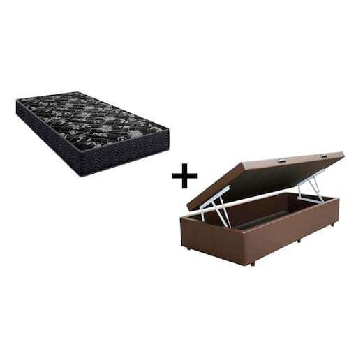 Cama Box Baú Solteiro 88 Tecido Sintético Marrom com Colchão Lisboa Espuma D28 Preto