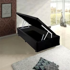 O Baú Master possui um sistema de amortecimento a gás que evita o esforço na hora de abri-lo, alça de apoio para o colchão não se deslocar quando você abrir o box e pés rosqueáveis que se ajustam aos desníveis do piso e tecido antiderrapante no tampo. Seu revestimento em tecido sintético ou suede tem uma linda estética e fácil de limpar. Além disso, proporciona amplo espaço de armazenamento para roupas de cama, travesseiros e outros itens, ajudando a manter seu ambiente organizado. Unindo qualidade, responsabilidade ambiental, bom gosto e o luxo do couro sintético/ Suede. Suporte de peso de 150 kg por pessoa.