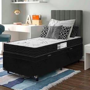 Cama Box Baú Solteiro + Colchão D33 One Face - Suede Preto - e-Shop Casa