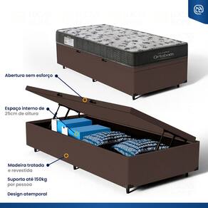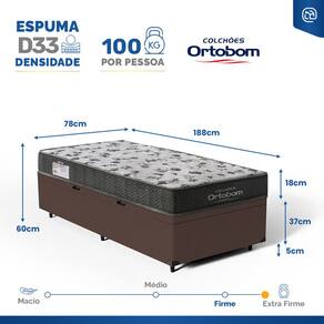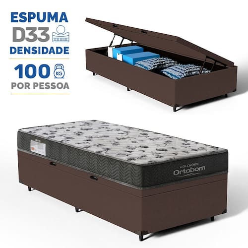Cama Box Baú Solteiro + Colchão D33 Ortobom Iso 100 78cm - Marrom