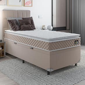 MODELO: Cama Box Baú Solteiro MARCA: Hellen COR: Bege MEDIDAS: [A] 65 cm - 53 cm (sem pés) - [L] 88 cm - [P] 188 cm REVESTIMENTO SUPERIOR: Tecido Jacquard, Bege Itália, 60% Poliéster, 40% Algodão e Espuma D20 REVESTIMENTO LATERAL: Tecido Jacquard, Bege Itália, 60% Poliéster, 40% Algodão e Espuma D20 REVESTIMENTO INTERIOR: Tecido Poliéster Bege, Espuma D20 DENSIDADE DA ESPUMA: D45 POSSUI PILLOW/EURO IN: Sim PESO SUPORTADO: 150kg por pessoa PESO: 37,86kg ITENS INCLUSOS: 1 Colchão 0,88m e 1 Box 0,88m CERTIFICADO INMETRO: 08446-23/2021 GARANTIA: 12 meses (Colchão) - 3 meses (Box) RECOMENDAÇÃO DE MANUTENÇÃO E USO: Não Molhar, utilizar o Colchão em local seco, sem umidade e manter protegido do sol. Não realizar limpeza do Colchão com escovas ou itens abrasivos ao tecido, não utilizar produtos de limpeza ácidos para limpeza do Colchão. Não pular ou sobrecarregar peso indicado para uso do Colchão. Não passar roupas ou expor o Colchão a calor, produto altamente inflamável.