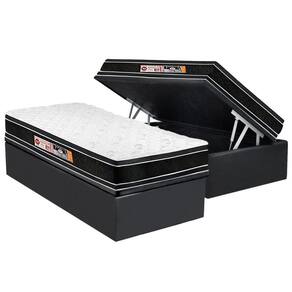 Conjunto Box Baú Solteiro: Colchão Espuma Castor D33 Black e White Air Double Face Euro Pillow + Base CRC Suede Gray(88x188)