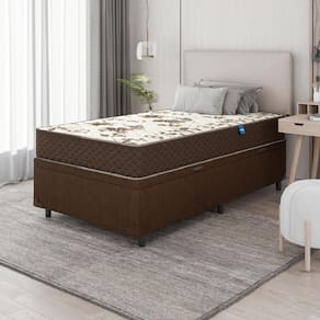MODELO: Cama Box Baú Solteiro Marquês MARCA: Umaflex COR: Marrom REVESTIMENTO TECIDO SUPERIOR COLCHÃO: Tecido Granite 100% Poliéster REVESTIMENTO TECIDO LATERAL COLCHÃO: Lateral bordada, tecido poliéster, tecido 100% sintético. Por ser sintético não é propenso ao acúmulo de poeira e materiais orgânicos, além de ser de fácil higienização REVESTIMENTO INTERIOR COLCHÃO: Espuma D33 aliada com o poliestireno expandido que faz com que o colchão suporte até 90kg por pessoa TECIDO BOX: Suede veludo PÉS: 6 ALTURA DOS PÉS: 6 cm PESO SUPORTADO: 90kg por pessoa PESO: 41kg ITENS INCLUSOS: 1 Colchão de 0,88m e 1 box baú de 0,88m INSTRUÇÕES / CUIDADOS: Utilizar em local seco com passagem de ar, não dobrar, fazer giro quinzenalmente no sentido pés/cabeceira. GARANTIA COLCHÃO: 12 Meses pelo Fabricante GARANTIA BOX: 3 meses pelo fabricante