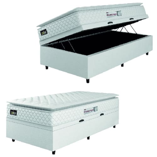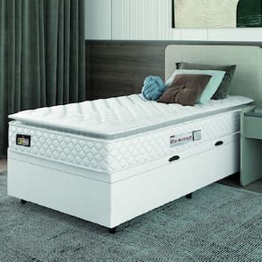 MODELO: Cama Box Baú Solteiro Colchão Espuma D33 Pillow Top New Millenium 88x188x60cm Suporta Até 120 Kg Por Pessoa