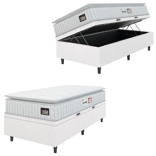 MODELO: Cama Box Baú Solteiro Colchão Espuma D33 Pillow Top Van Gogh 88x188x65cm Suporta Até 120 Kg Por Pessoa