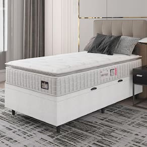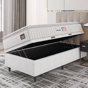 Você merece o melhor quando se trata do seu sono e bem-estar, e por isso o Colchão de Solteiro Van Gogh e o Box Baú Prince se tornam a escolha perfeita para o seu quarto! O Colchão suporta até 120 kg por pessoa, possui tampo bordado em malha, laterais em tecido Jacquard de toque macio e uma camada de Pillow Top para que você tenha uma noite de sono mais tranquila, com garantia de total descanso e qualidade de vida! O Box é feito de tecido reforçado e nobre, possui baú e um sistema de abertura fácil, onde você terá mais espaço para poder guardar os seus objetos pessoais, roupas, travesseiros, edredons. Confeccionado com materiais de qualidade garantindo maior durabilidade e resistência.