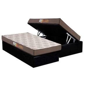 Conjunto Box Baú Solteiro: Colchão Espuma Polar D28 Pérola + Base CRC Suede Black(88x188)