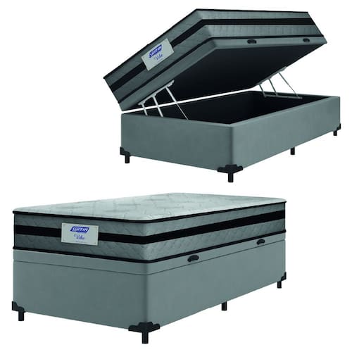 MODELO: Cama Box Baú Solteiro Colchão Com Molas Ensacadas Vibe 88x188x63cm Suede Suporta Até 110 Kg Por Pessoa