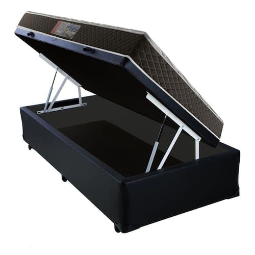 Cama Box Baú Solteiro Colchão Mola Bonnel Acolchões + Box Sintético 61x88x188 - Preto