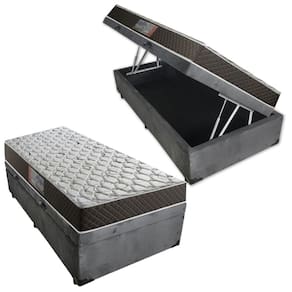 Cama Box Baú Solteiro Colchão Mola Ensacada Acolchões + Box Suede 61x88x188 - Cinza