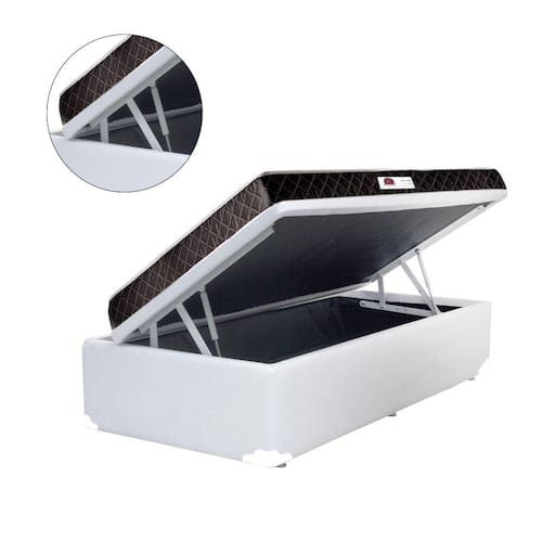 Cama Box Baú Solteiro Colchão Mola Ensacada Belos Sonhos + Box Sintético 61x88x188 - Branco
