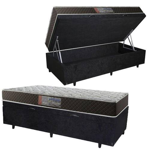 Cama Box Baú Solteiro Colchão Mola Ensacada Belos Sonhos + Box Suede 61x88x188 - Cinza