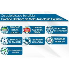 Dimensões(Cm): Comprimento(Profundidade): 188cm x Largura: 88cm x Altura: 30cm Vantagens Extras de Colchão - Ecologicamente Correto - c/ Sistema Polyframe - Sob Medida Tipo de Pillow - Pillow Top Europeu Tecido com Tratamento - AntiÁcaro e AntiFungo - Evo Care Tipo de Bordado do Tecido de Revestimento - Localizado Tipo Tecido de Forração Revestimento - Fibras de Eucalipto Tipo de Forração do Revestimento Inferior - Antiderrapante Tipo de Tecido de Revestimento da Faixa Lateral - Poliéster Modo de Utilização - One Side Camadas Interna do Estofamento de Espuma - D26 - D33 Tipo de Espuma - Espuma de Poliol Vegetal Tipo de Mola - Nanolastic Nível de Firmeza do Colchão - Macio c/ Firmeza Peso Máximo Suportado - 150 kg Certificação de Qualidade - Qualidade Aprovada Nossa Avaliação - Qualidade Excelente Tempo de Garantia - Certificado de Garantia Digital - 60 meses