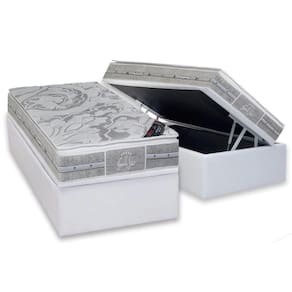 Abaixo segue os produtos do KIT: Conjunto Box Baú Solteiro: Colchão Molas Castor Ensacadas Super Luxo Látex SLX + Base CRC Suede Gray (88x188)