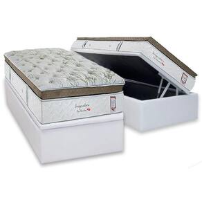 Cama Box Baú Solteiro: Colchão Molas Ensacadas Herval Imperatore Eco Bamboo + Base Crc Linhão White (88x188)